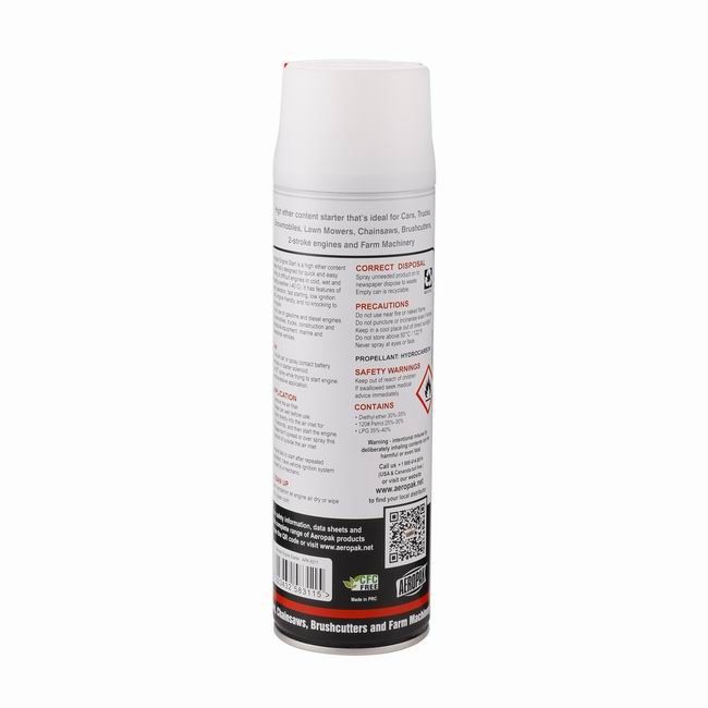 एयरोपैक इंजन स्टार्टर स्प्रे को ठंड, गीले और ठंडे मौसम की स्थिति (-40 डिग्री सेल्सियस से नीचे) में कठिन इंजनों की त्वरित और आसान शुरुआत के लिए डिज़ाइन किया गया है। इस पेशेवर-ग्रेड शुरुआती तरल पदार्थ में आसान संचालन, तेज शुरुआत, कम इग्निशन बिंदु, इंजन-अनुकूल फॉर्मूलेशन और इंजन को खटखटाने से रोकने की सुविधा है।