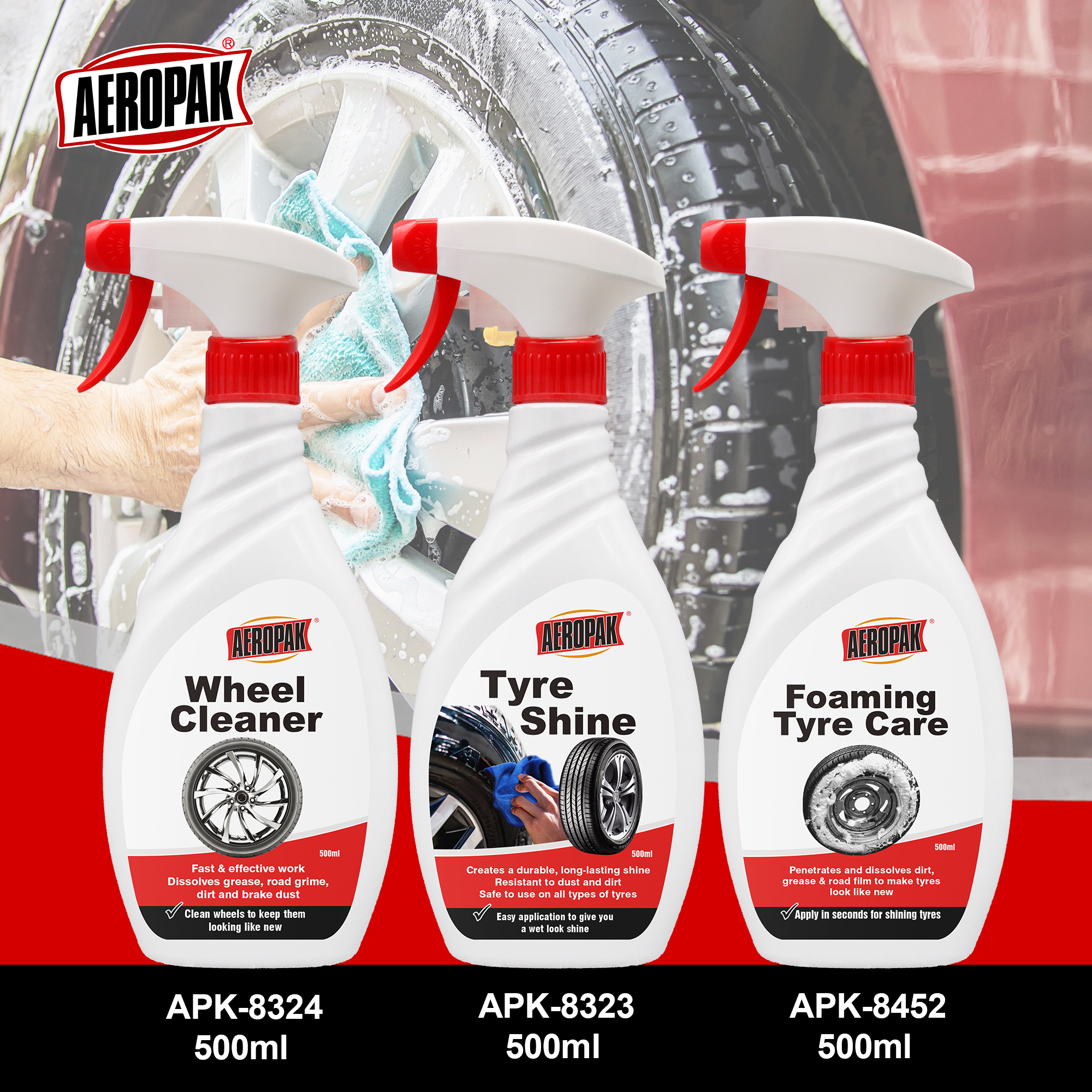 Aeropak 500ml टायर क्लीनर स्प्रे & फोम-शीन टायर & व्हील क्लीनर