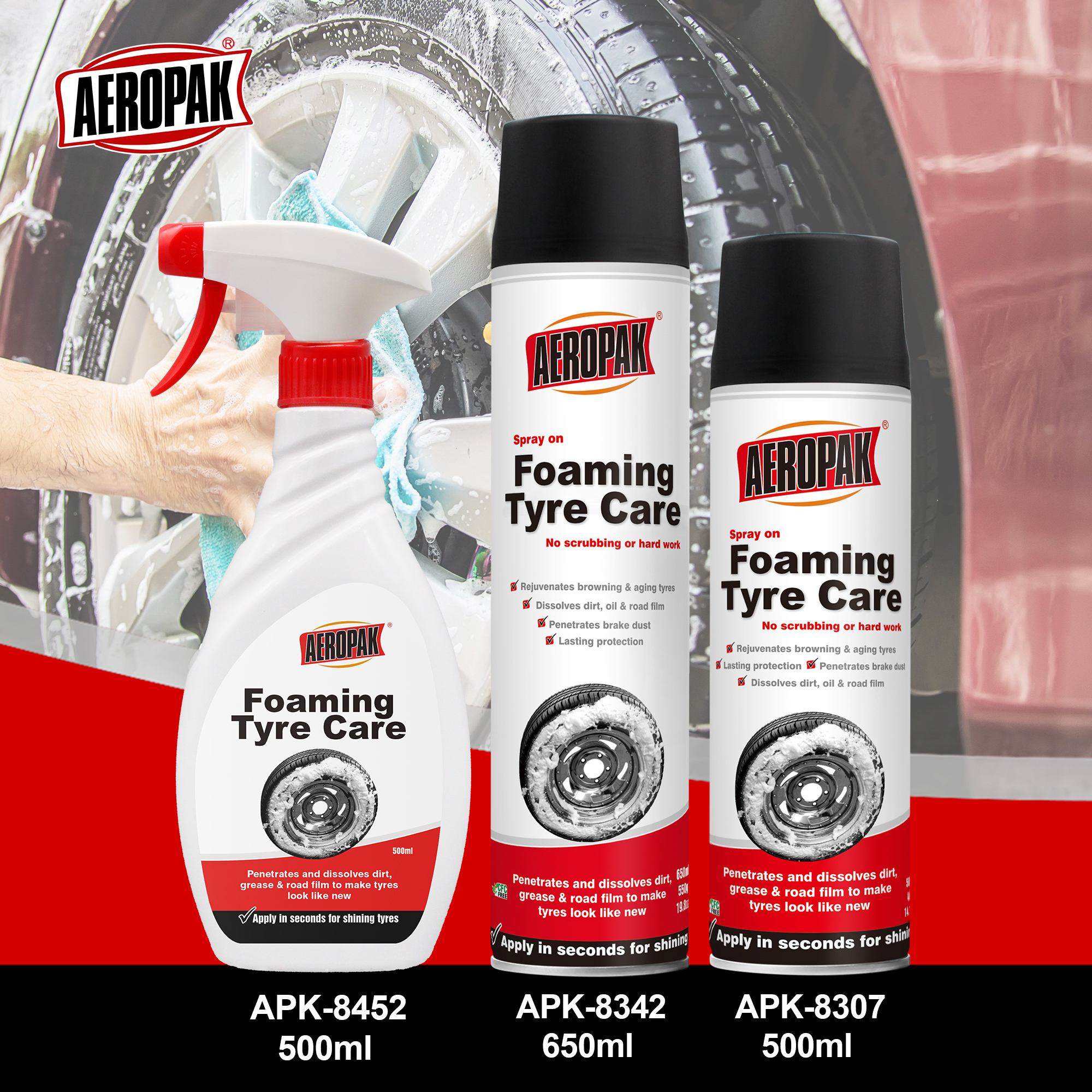 एरोपैक फोमिंग टायर केयर में एक मैक्रोमोलेक्यूल घटक होता है जो सड़क की गंदगी, ब्रेक धूल, गंदगी, फिल्म और वसा को हटाने के लिए प्रवेश करता है।यह विशेष सूत्र लंबे समय तक चलने वाली सुरक्षा प्रदान करता है और भूरे रंग और उम्र बढ़ने वाले टायरों को फिर से जवान करता है, एक धब्बा मुक्त खत्म छोड़ रहा है।